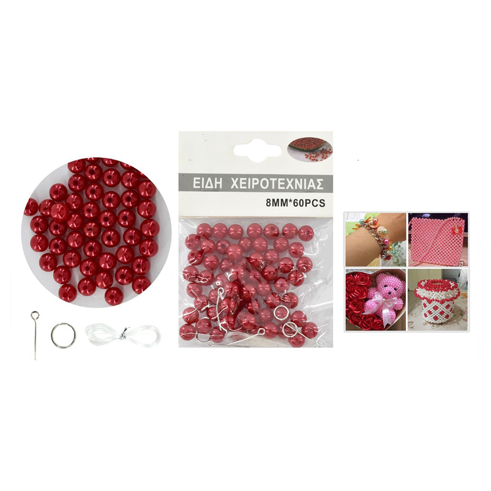 Πέρλες Χειροτεχνίας Κόκκινες 8 mm 60 Τμχ