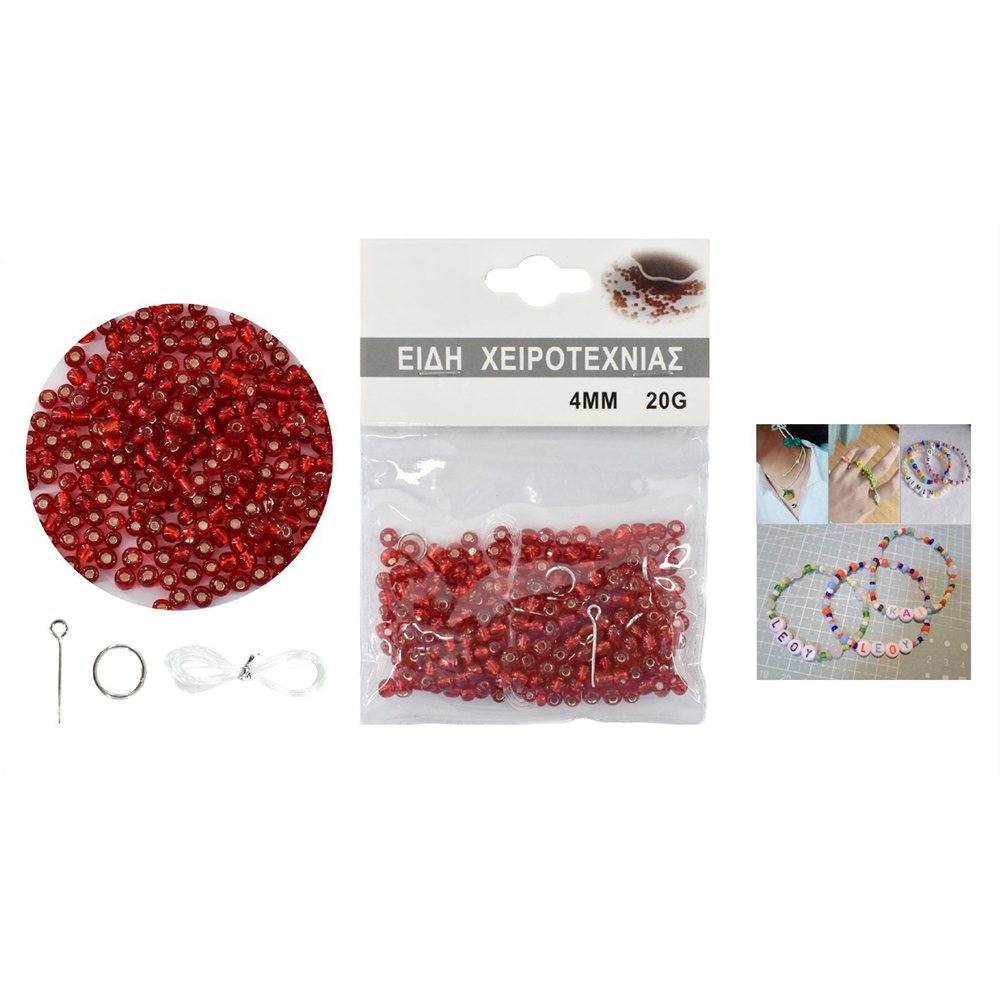 Χάντρες Χειροτεχνίας Κόκκινες 4 mm 20 Gr