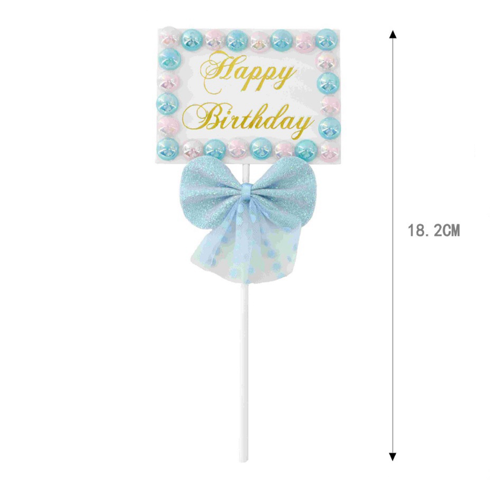 Cake Topper Happy Birthday Με Φιόγκο Και Πέρλες 18,2 εκ