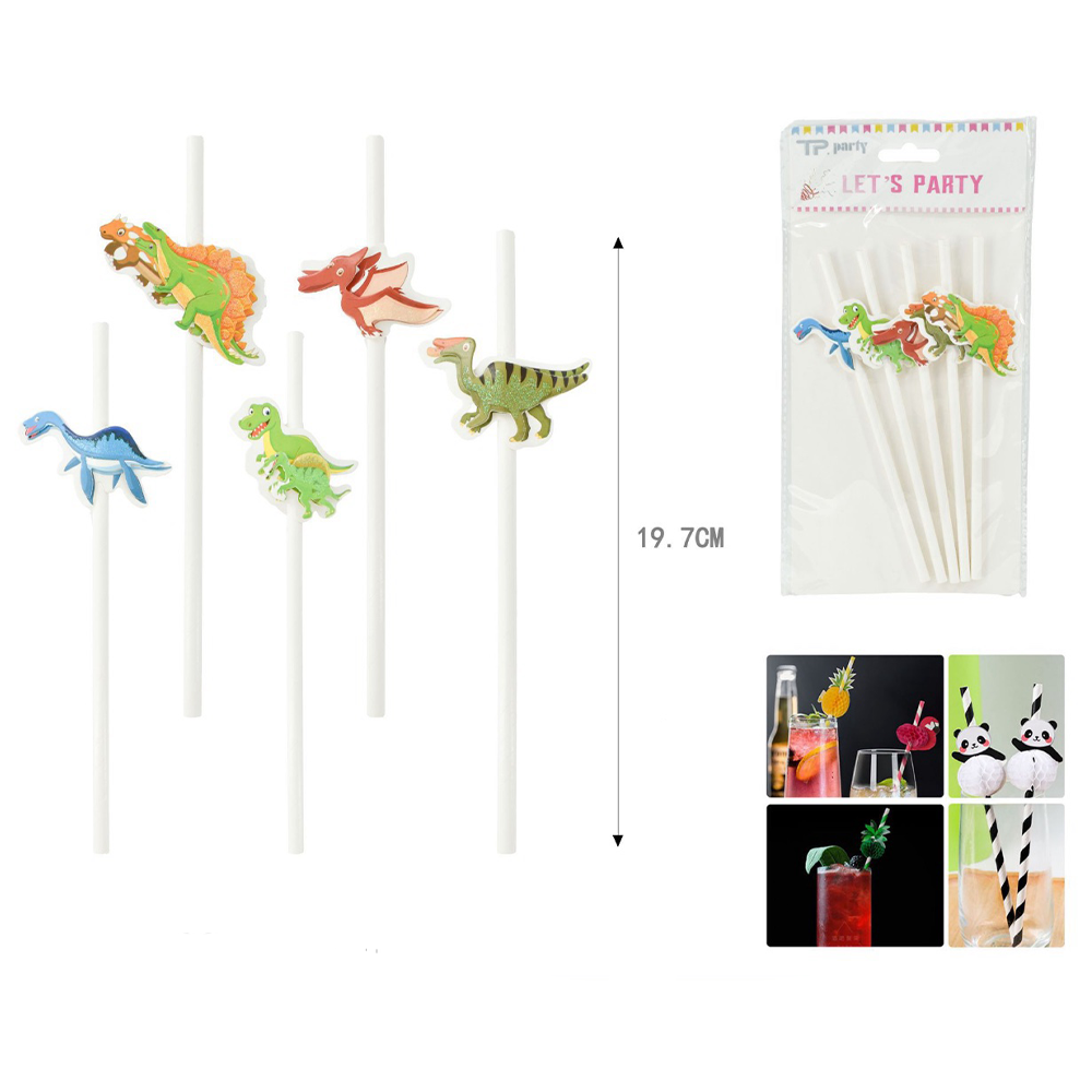 Σετ Χάρτινα Καλαμάκια Party Δεινοσαυράκια 19,7 εκ 5 Τμχ
