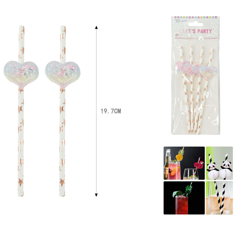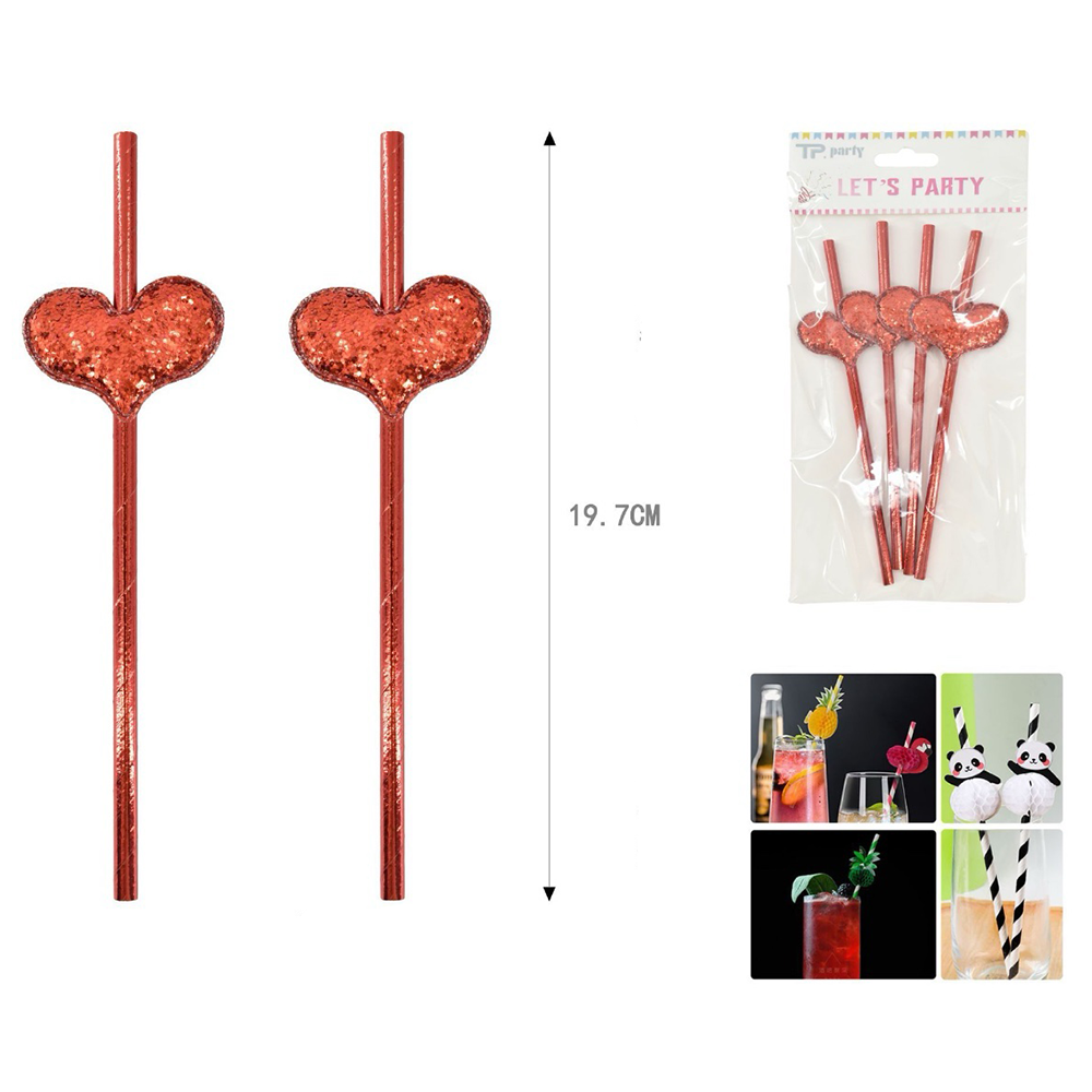 Σετ Χάρτινα Καλαμάκια Party Καρδούλες Με Πούλιες 19.7 εκ 4 Τμχ