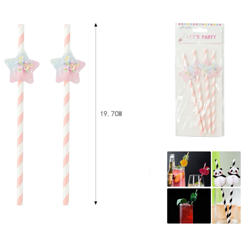 Σετ Χάρτινα Καλαμάκια Party Αστεράκια Με Πούλιες 19.7 εκ 4 Τμχ