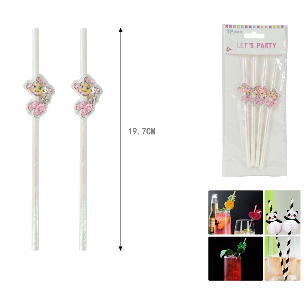 Σετ Χάρτινα Καλαμάκια Party Ψαράκι Ροζ Με Πούλιες 19.7 εκ 4 Τμχ