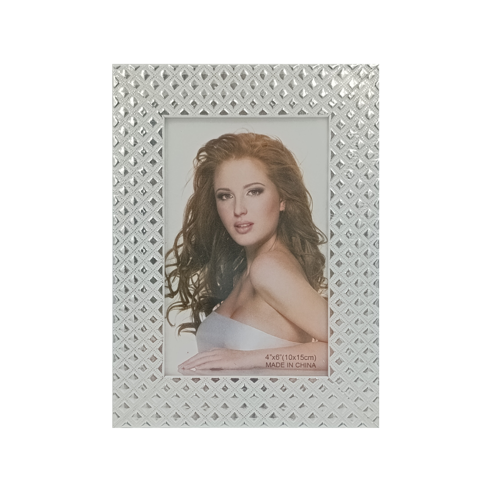 Κορνίζα Λευκή Με Ασημί Ρόμβους 10Χ15εκ