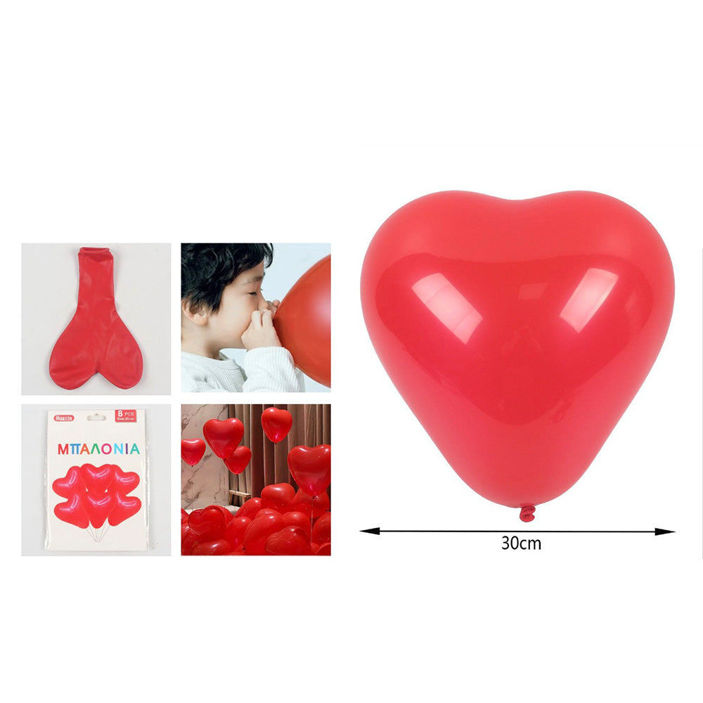 Σετ Κόκκινα Μπαλόνια Καρδιά – 8 Τεμάχια, 30 εκ