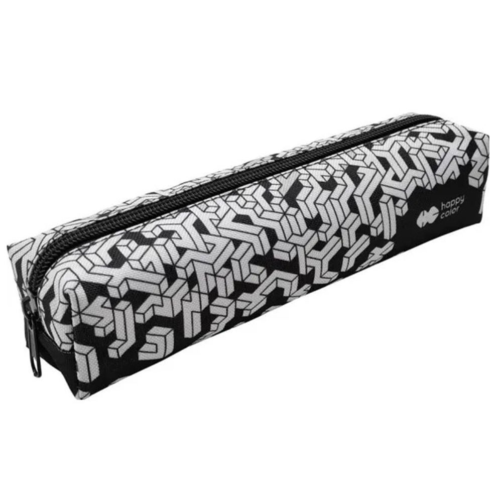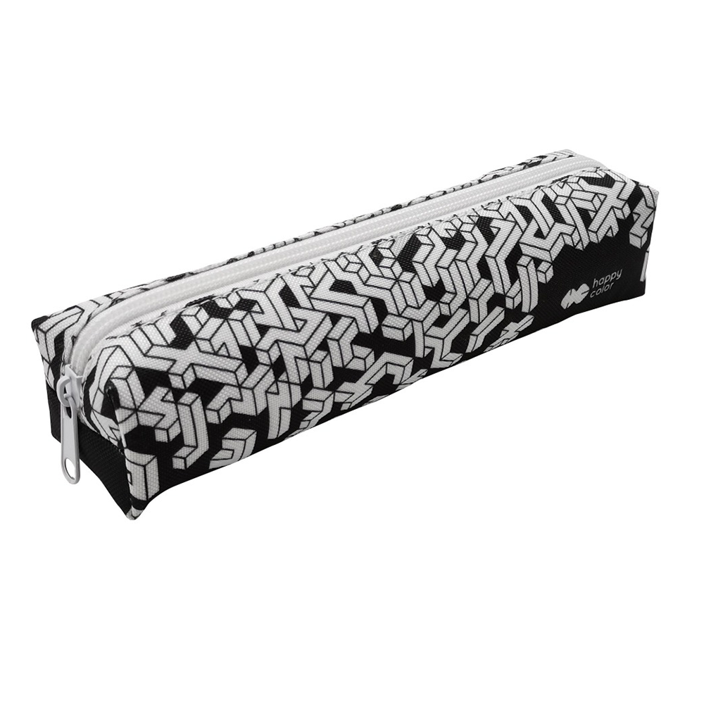Κασετίνα Βαρελάκι Happy Color Λευκά Σχέδια Και Μαύρο Φερμουάρ