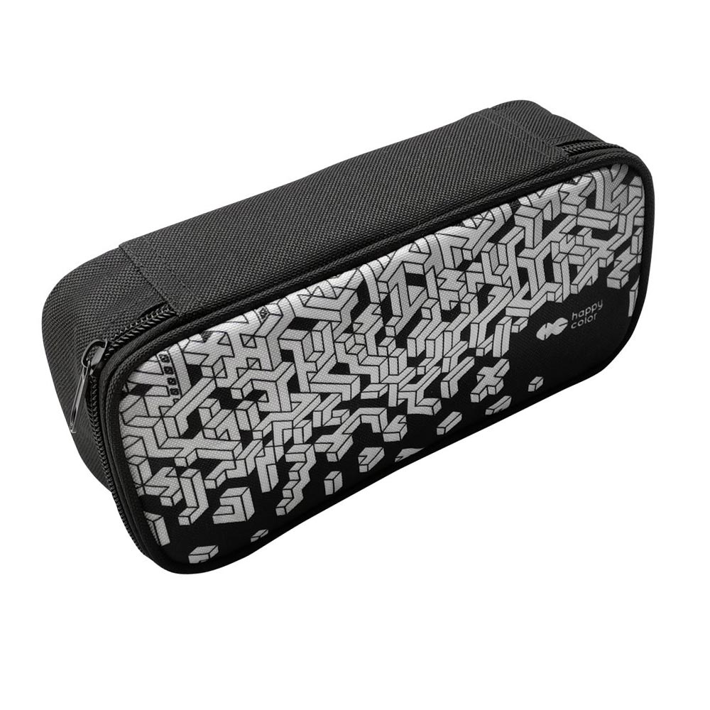 Κασετίνα Οβάλ Happy Color Λευκά Σχέδια Και Μαύρο Φερμουάρ
