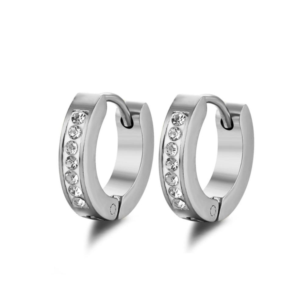 Κρικάκια Stainless Steel Ασημί Φαρδιά Με Στρασάκια Φ1εκ