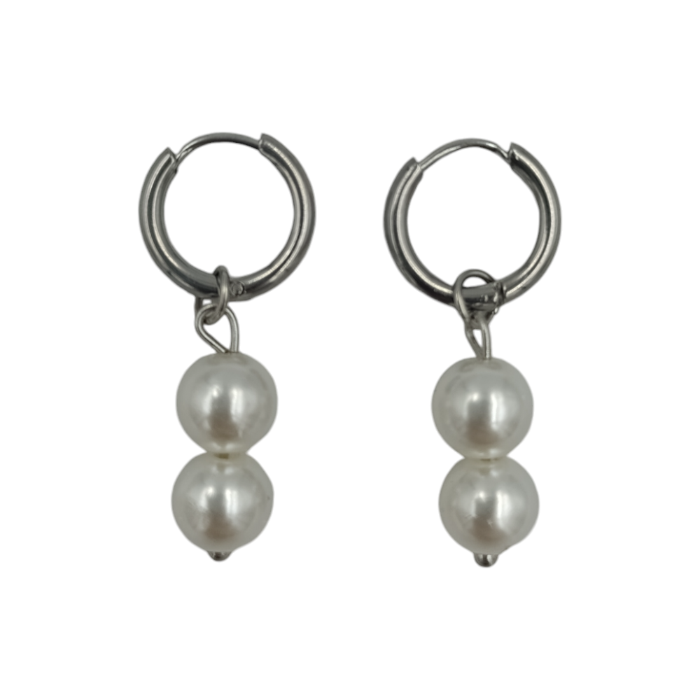 Σκουλαρίκια Stainless Steel Κρικάκια Με Διπλή Πέρλα 2 εκ