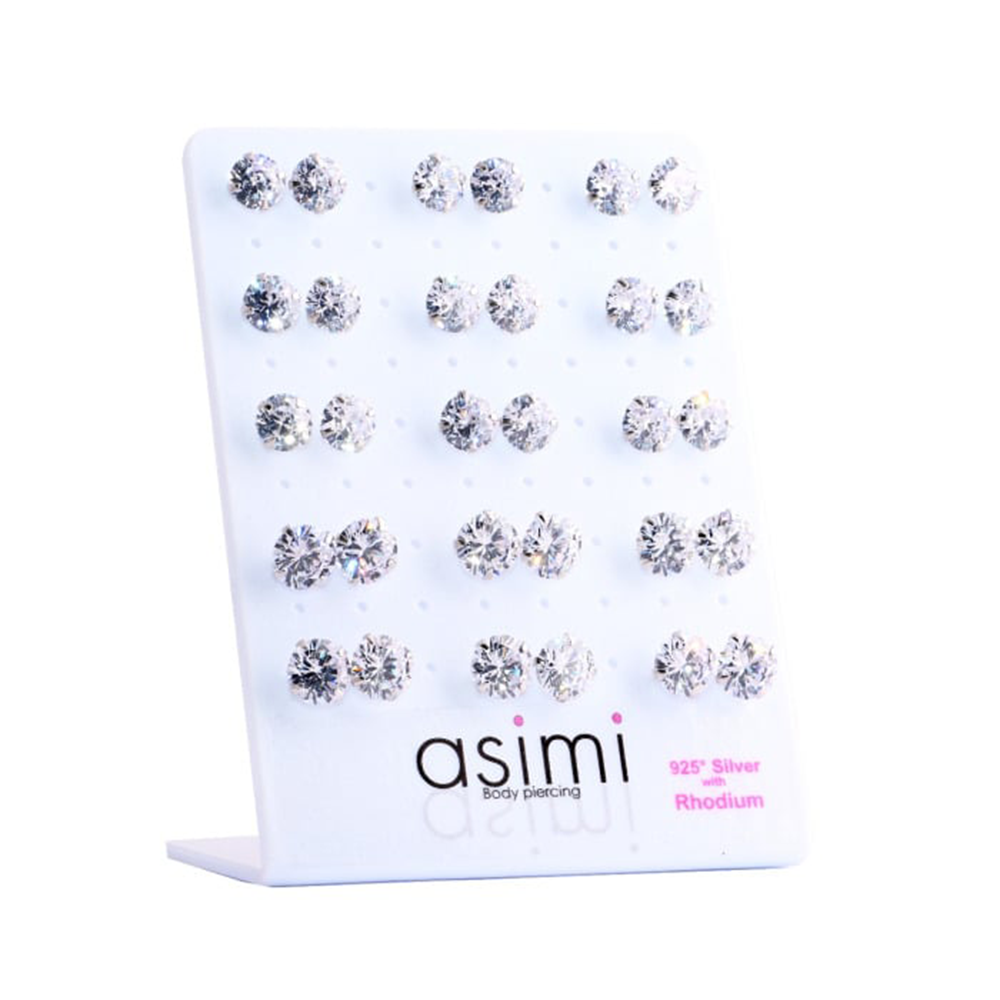 Asimi Ασημένιο Επιροδιωμένο Σκουλαρίκι Με Ζιργκόν 8-10mm - 1 Ζευγάρι