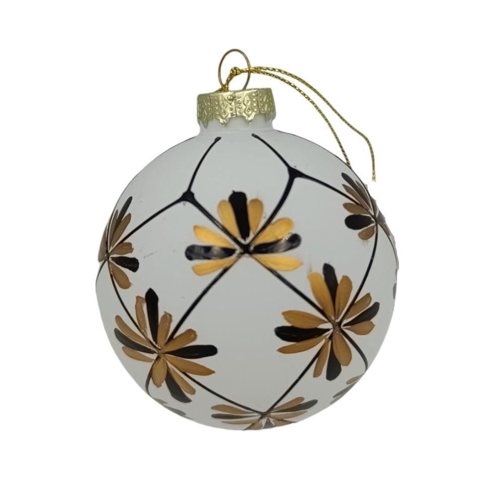 Χριστουγεννιάτικη Μπάλα Γυάλινη Μπρονζέ Με Glitter Ρίγες 8εκ