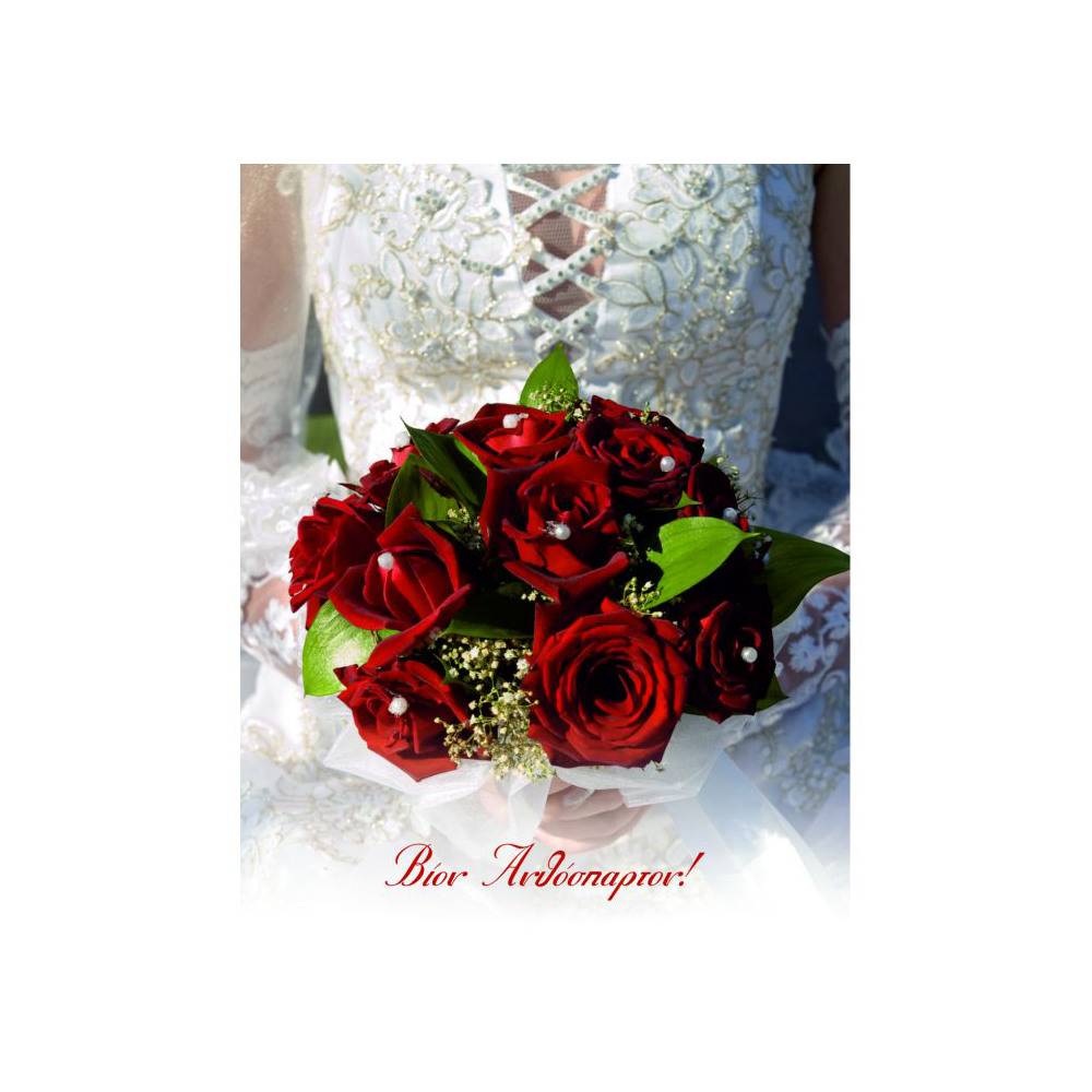 Ευχετήρια Κάρτα Γάμου Βίον Ανθόσπαρτον Μπουκέτο Κόκκινα Τριαντάφυλλα