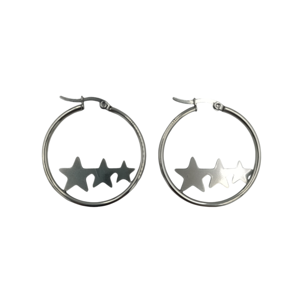 Κρίκοι Stainless Steel Ασημί Με 3 Αστέρια Φ3εκ