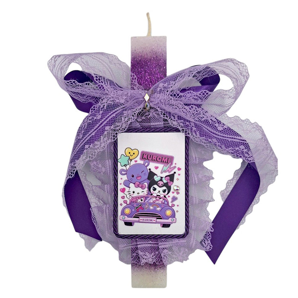 Η Λαμπάδα Χειροποίητη Πλακέ Αρωματική Kuromi & Friends σε Καδράκι είναι μια ιδιαίτερη και χαριτωμένη πασχαλινή πρόταση που θα λατρέψουν οι fans των kawaii χαρακτήρων. Εμπνευσμένη από τη δημοφιλή ηρωίδα Kuromi από τον κόσμο της Sanrio, αυτή η λαμπάδα συνδυάζει παιχνιδιάρικη αισθητική με μοντέρνο στυλ.