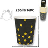 Σετ Χάρτινα Ποτήρια Party Μαύρα με Χρυσές Βούλες 250 ml (16 Τεμάχια)