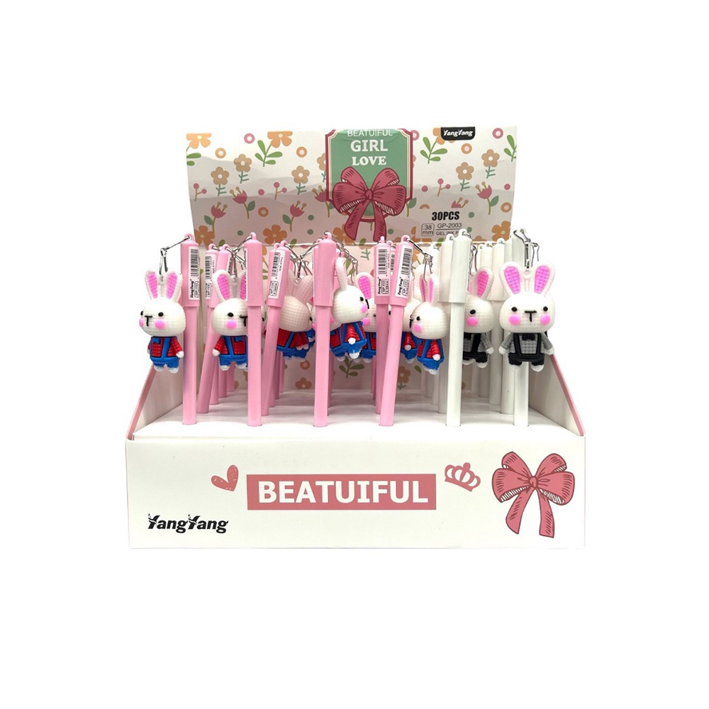 Τα στυλό φιγούρα λαγουδάκι είναι μια γλυκιά και παιχνιδιάρικη προσθήκη στη συλλογή σας από γραφικά εργαλεία γραφής. Κάθε στυλό διαθέτει μια μικρή φιγούρα λαγουδάκι στην κορυφή του, που προσδίδει μια αίσθηση χαράς και παιχνιδιάρικου στυλ σε κάθε γραπτή σας επικοινωνία.