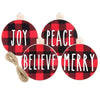 Οι ευχές – όπως “Merry Christmas”, “Joy”, προσθέτουν ζεστασιά και προσωπικότητα στον στολισμό, ενώ το καρώ μοτίβο φέρνει στο χώρο τη διαχρονική γιορτινή αίσθηση του κόκκινου και του πράσινου. Ελαφριά, ανθεκτικά και εύκολα στο κρέμασμα, τα στολίδια αυτά προσθέτουν όμορφες πινελιές σε κάθε δέντρο, γιρλάντα ή στεφάνι.
