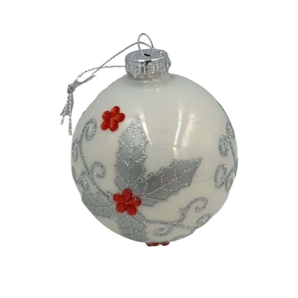 Χριστουγεννιάτικη Μπάλα Γυάλινη Λευκή Με Γκι 8εκ 1Τμχ