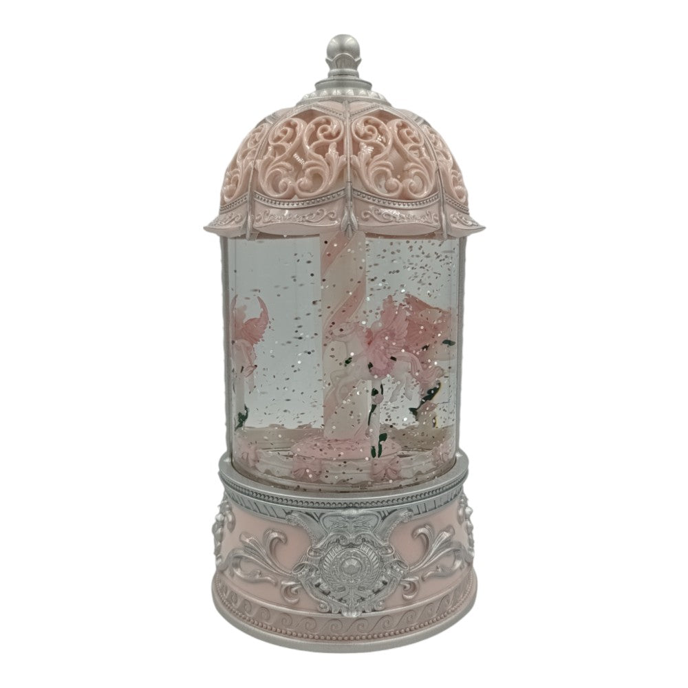 Χριστουγεννιάτικο Διακοσμητικό Καρουζέλ Ροζ Με Νερό, Φως Και Μουσική 21Χ11.4X11.4εκ