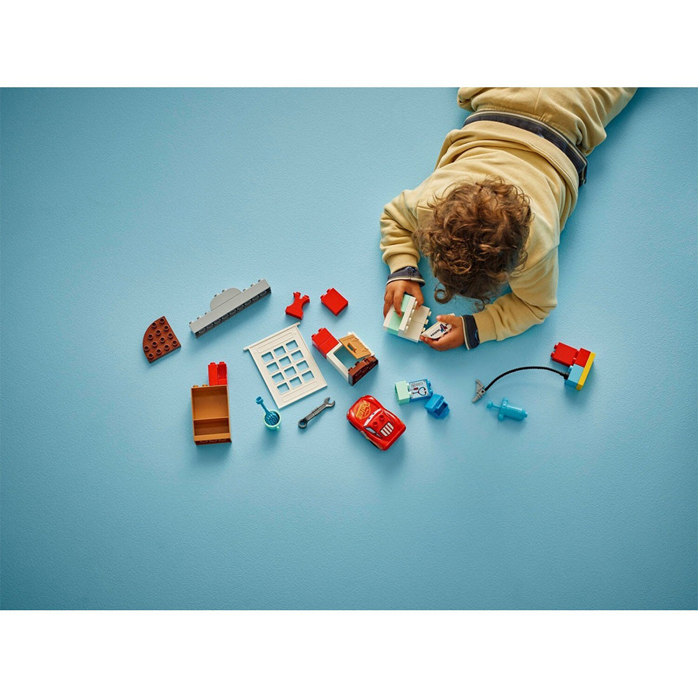 Τα νήπια θα ενθουσιαστούν βάζοντας και βγάζοντας το αυτοκίνητο στο γκαράζ και σπρώχνοντας την πόρτα. Εξασκούν τις λεπτές κινητικές δεξιότητές τους χρησιμοποιώντας το κλειδί, ανοίγονταςκαι κλείνοντας τις πόρτες του ντουλαπιού και απελευθερώνοντας τη μάνικα στο κατασκευάσιμο πλυντήριο αυτοκινήτων για να καθαρίσουν τον Κεραυνό Μακουίν από τα χώματα του αγώνα. Τα παιχνίδια κατασκευής και φαντασίας LEGO® DUPLO® βοηθούν τα νήπια να αναπτύξουν προσχολικές δεξιότητες.