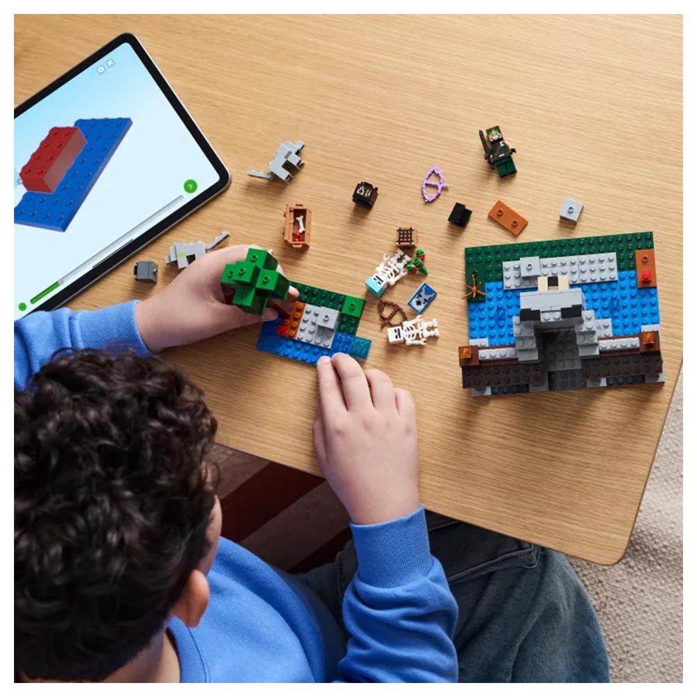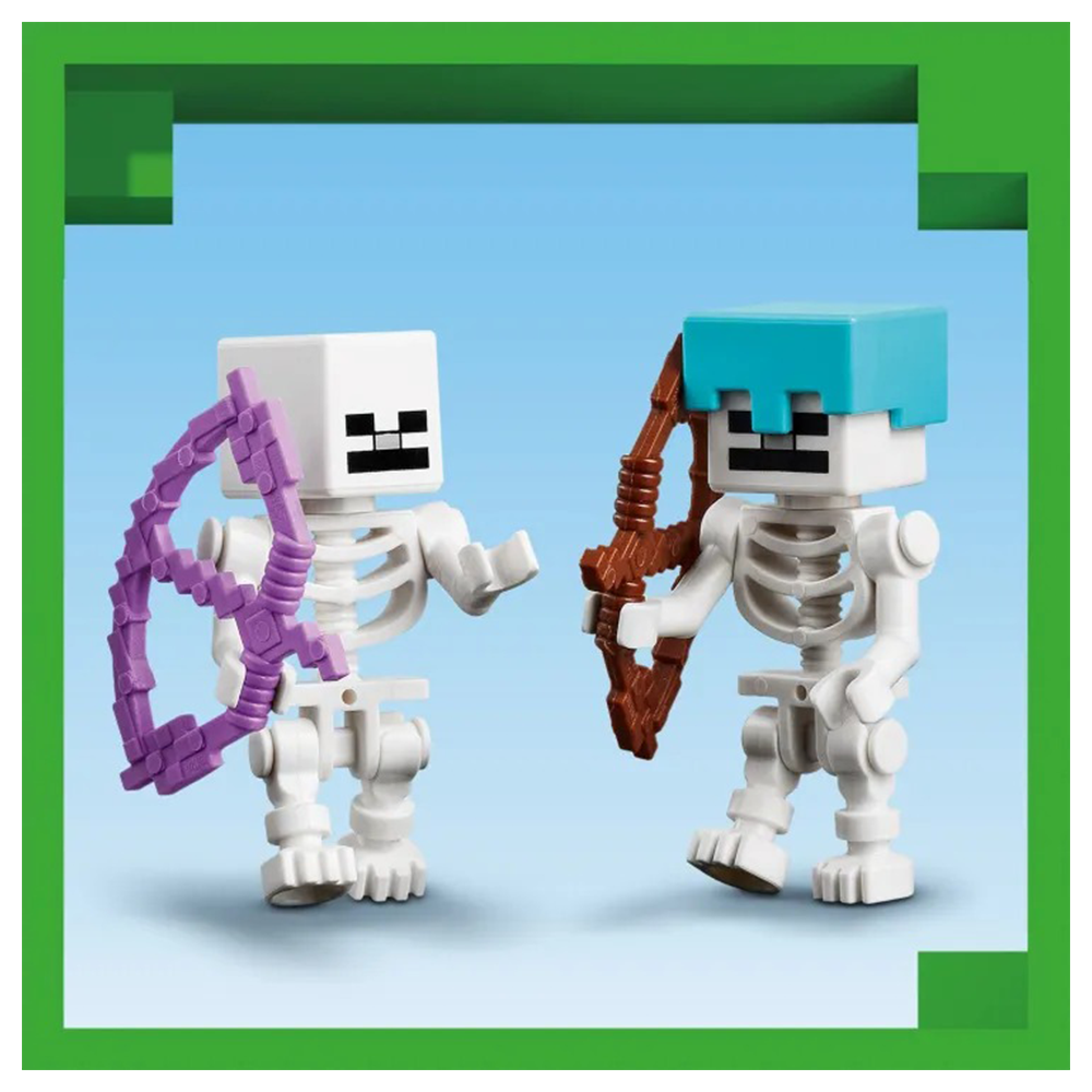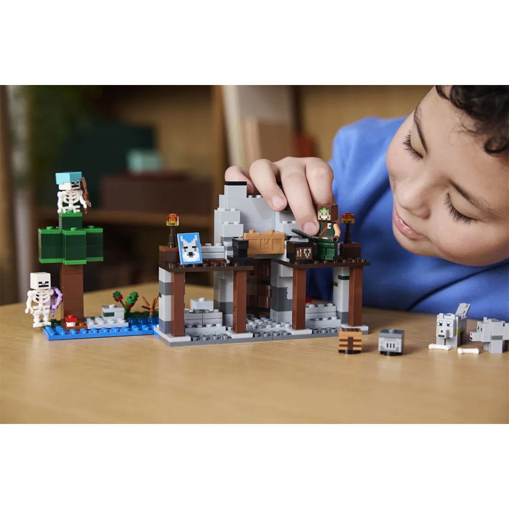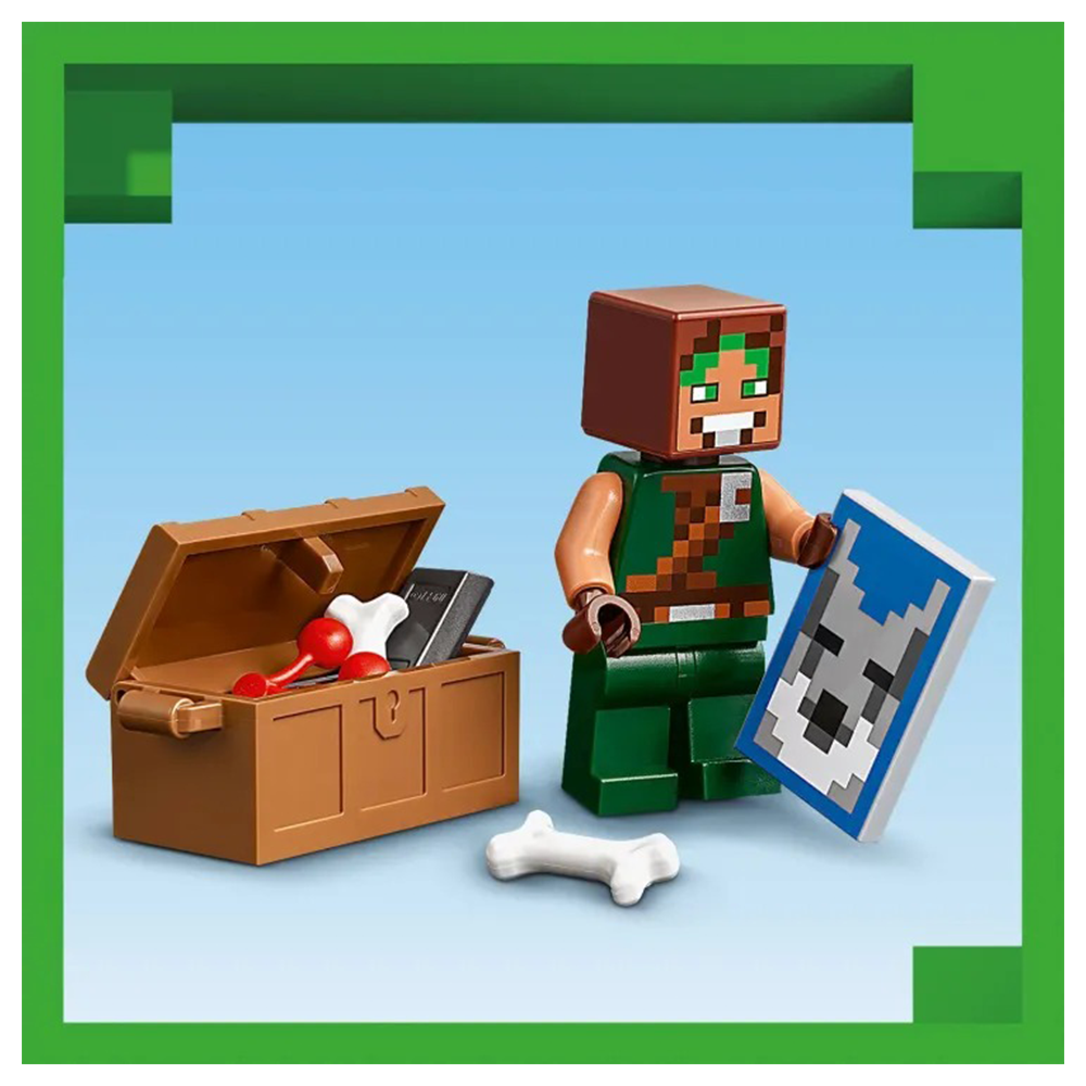 Τα παιδιά που αγαπούν τα σετ περιπέτειας και δράσης, τα παιχνίδια με φρούρια και τους Minecraft® χαρακτήρες θα ενθουσιαστούν με αυτό το LEGO® Minecraft The Wolf Stronghold (21261). Αυτό το Minecraft για παιδιά ηλικίας 8 ετών και άνω είναι εμπνευσμένο από το βιντεοπαιχνίδι και προσφέρει μια δημιουργική κατασκευή και δράση με ήρωα εξερευνητή και μάχες. Τα παιδιά κατασκευάζουν μια βάση με μεγάλο κεφάλι λύκου πάνω από την είσοδο για τον Δαμαστή Λύκων, και μετά διασκεδάζουν αλλάζοντας το πρόσωπο του λύκου από φιλικό σε θυμωμένο. Στο εσωτερικό υπάρχει τραπέζι κατασκευών, καμίνι, αμόνι και, για πρώτη φορά σε ένα σετ LEGO Minecraft, τραπέζι μεταλλουργίας. Ένα σεντούκι προμηθειών περιέχει ράβδο Εγκατίτη με την οποία τα παιδιά κατασκευάζουν ένα σπαθί, γλυκά μούρα και κόκαλα που χρησιμοποιούνται για την εξημέρωση του άγριου λύκου. Έξω υπάρχει ένα τμήμα δάσους με δέντρο, βράχο, μανιτάρι και θάμνο γλυκών μούρων. 2 Minecraft σκελετοί περιπλανώνται στο δάσος: ο ένας έχει ένα μαγεμένο τόξο και ο άλλος τόξο και βέλος και διαμαντένιο κράνος. Για επιπλέον ψηφιακή διασκέδαση, οι κατασκευαστές μπορούν να χρησιμοποιήσουν την απλή εφαρμογή LEGO Builder.