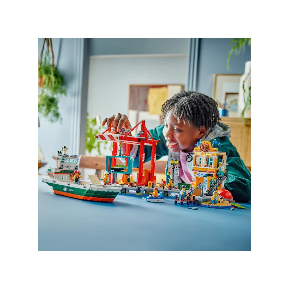 Καλωσόρισες στο ηλιόλουστο Παραθαλάσσιο Λιμάνι της LEGO® City όπου ο χειριστής του γερανού ξεφορτώνει ένα καινούργιο θαλάσσιο σκούτερ και θαλάσσιο ποδήλατο από ένα φορτηγό πλοίο. Διασκέδασε στην παραλία, κολύμπησε ή χαλάρωσε κάτω από μια ομπρέλα. Πήγαινε για ψάρεμα ή στην αποβάθρα για να επισκεφτείς το κατάστημα παγωτών ή ανέβα τις σκάλες προς το εστιατόριο με θαλασσινά! Απίθανη μέρα!