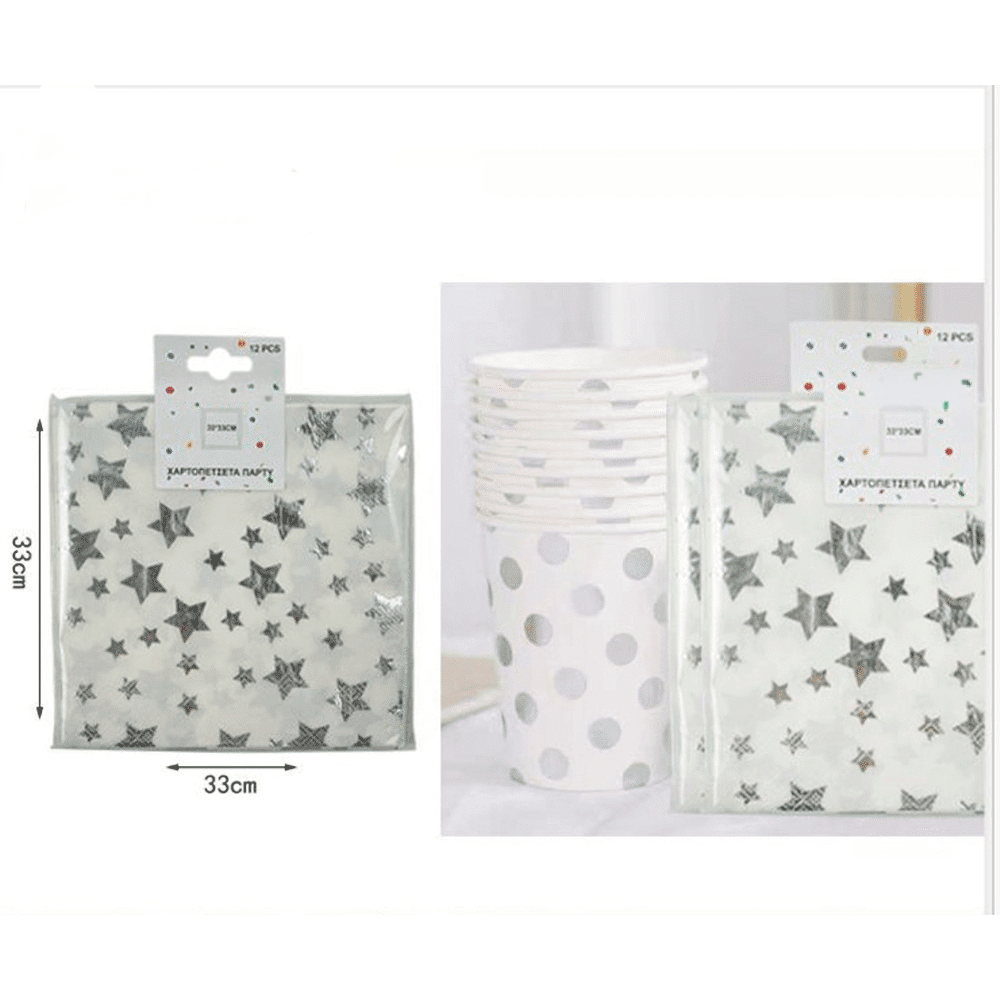 Χαρτοπετσέτες Party Ασημί Αστεράκια 33Χ33εκ 12 Τμχ