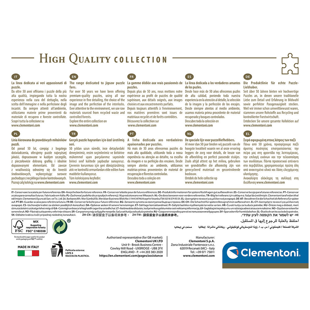 Clementoni Παζλ 1000 τεμαχίων της σειράς Museum με θέμα Leonardo Da Vinci: Μόνα Λίζα. Η σειρά παζλ Museum της Clementoni είναι αφιερωμένη στα κορυφαία μουσεία και τα σπουδαιότερα έργα τέχνης στην ιστορία. Συντονισμένα με τη σημασία της περιβαλλοντικής ευαισθητοποίησης, τα παζλ Clementoni φτιάχνονται με εκτεταμένη χρήση ανακυκλωμένων υλικών, αποφεύγοντας παράλληλα τη χρήση από τυχόν συστατικά που περιέχουν ρύπους.