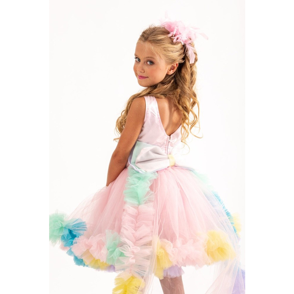 Περιλαμβάνει: φόρεμα με αποσπώμενη ουρά, κοκαλάκι.