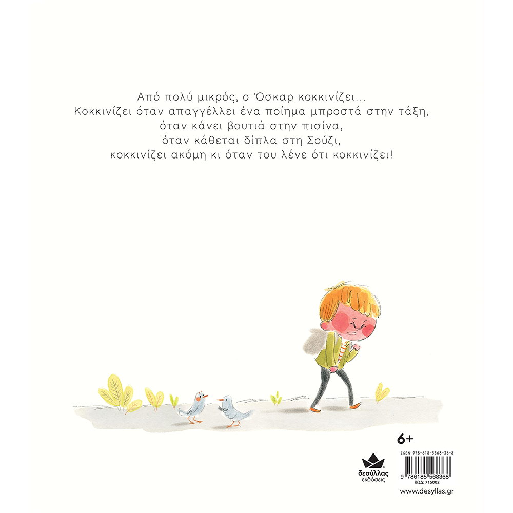 Από πολύ μικρός ο Όσκαρ κοκκινίζει … Κοκκινίζει όταν απαγγέλλει ένα ποίημα μπροστά στην τάξη, όταν κάνει βουτιά στην πισίνα, όταν κάθεται δίπλα στη Σούζι, κοκκινίζει ακόμη κι όταν του λένε ότι κοκκινίζει!