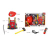 Παιδικό σετ πυροσβέστη, που περιλαμβάνει γιλέκο, κράνος, γυαλιά, σήμα, πυροσβεστήρα, τσεκούρι και λοστό. Προσοχή! Δεν είναι κατάλληλο για παιδιά κάτω των 3 ετών, μικρά μέρη - κίνδυνος πνιγμού.