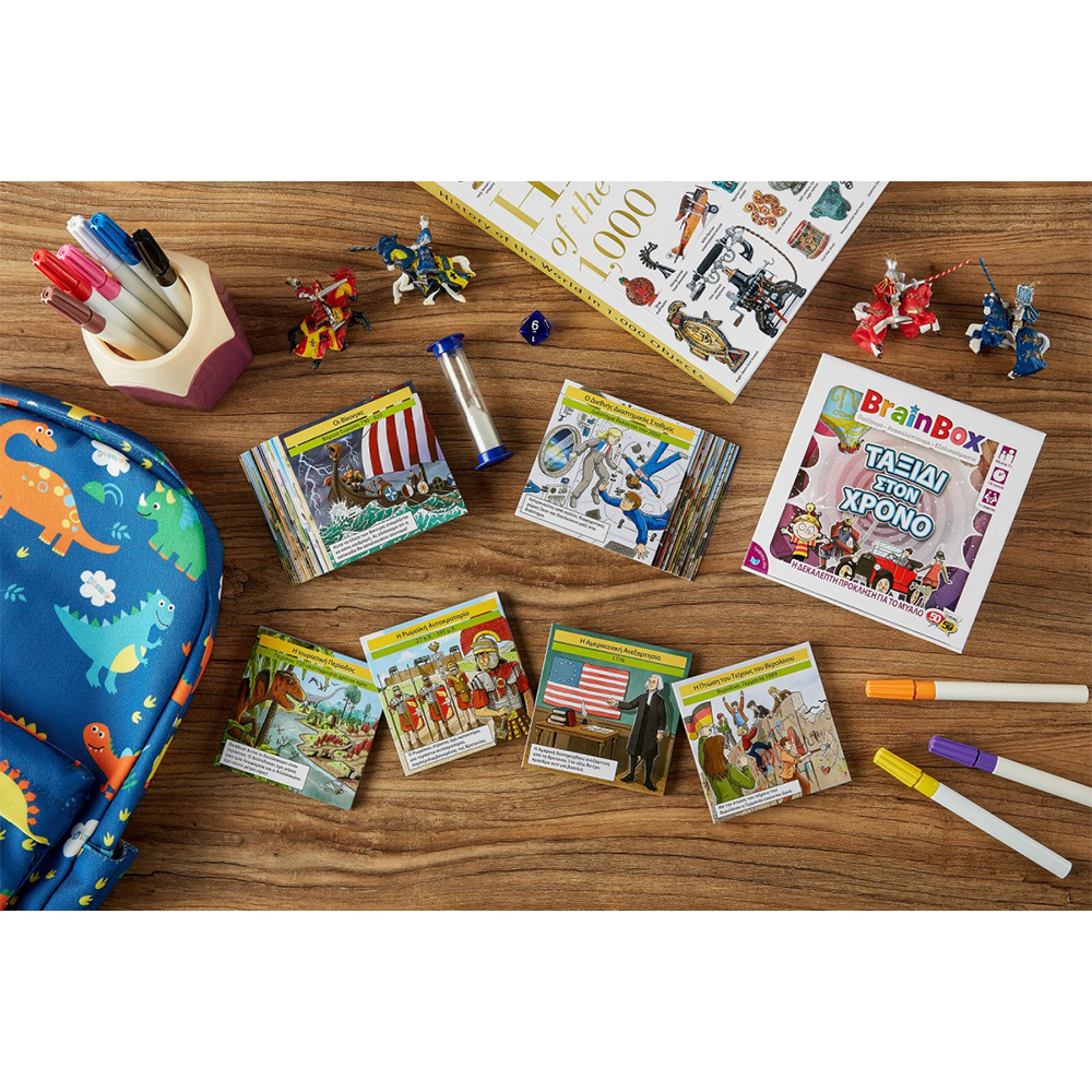 Θα σου άρεσε να μπορείς να ταξιδεύεις στον χρόνο; Αυτό το υπέροχο BrainBox είναι ό,τι καλύτερο χάρη στα στιγμιότυπα για τα κύρια γεγονότα και τη ζωή στο παρελθόν! Από τους δεινόσαυρους ως την ανακάλυψη της Αυστραλίας, μπορείς να εξερευνήσεις το παρελθόν με αυτό το εκπληκτικό παιχνίδι - χωρίς χρονομηχανή!