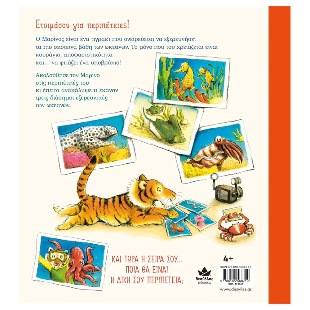Ο Μαρίνος είναι ένα τιγράκι που ονειρεύεται να εξερευνήσει τα πιο σκοτεινά βάθη των ωκεανών. Το μόνο που του χρειάζεται είναι κουράγιο, αποφασιστικότητα και… να φτιάξει ένα υποβρύχιο!