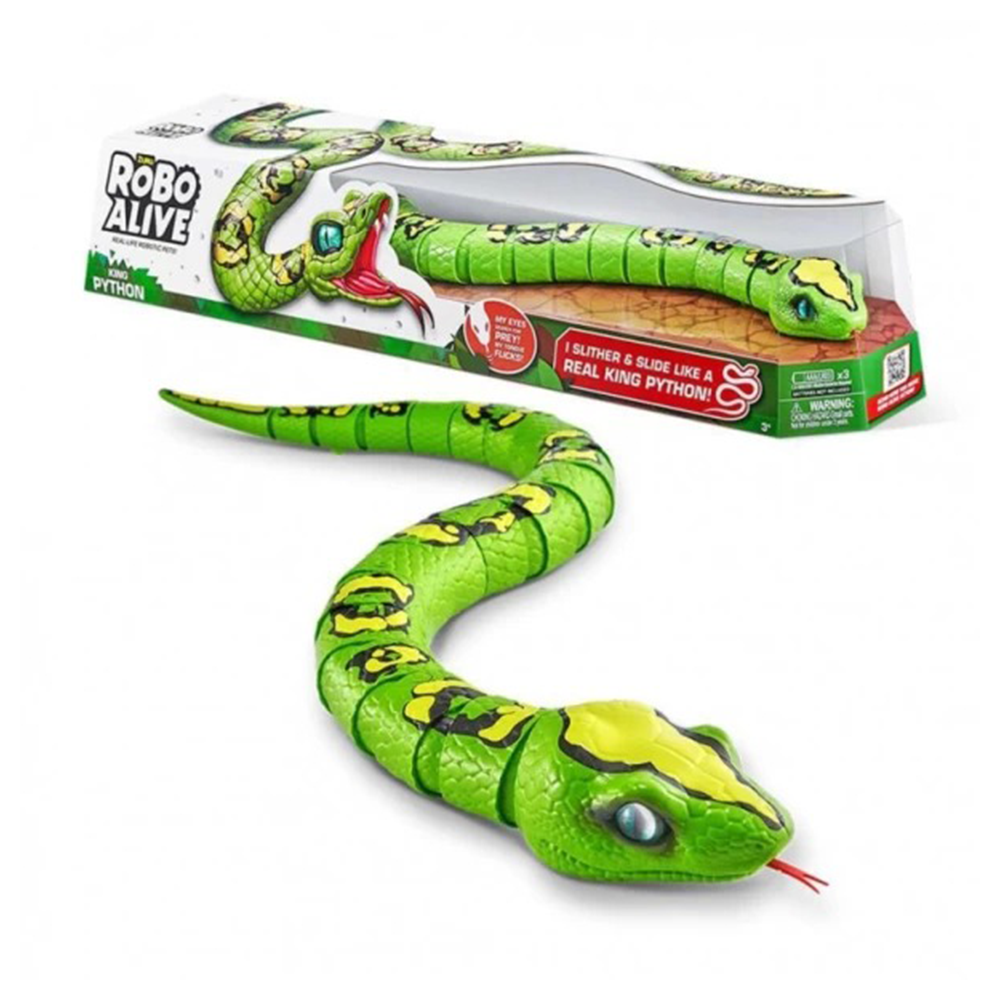 Τι είναι πιο τρομακτικό από έναν πύθωνα; Ένας Γιγαντιαίος Βασιλιάς Πύθωνας ! Πρόσεχε. Είναι ο πύθωνας Robo Alive King. Αυτό το ρεαλιστικό ερπετό χρησιμοποιεί πρωτοποριακή ρομποτική τεχνολογία για να γλιστράει με εξαιρετικά πραγματική κίνηση. Κρύψτε τον King Python κάτω από το τραπέζι φαγητού για να τρομάξετε την οικογένεια σας ή βάλτε τον κρυφά το βράδυ κάτω από το μαξιλάρι τους για να τρομοκρατηθούν εκεί που δεν το περιμένουν. Ο King Python είναι ένα εξαιρετικά ρεαλιστικό θηρίο με διάσταση 80 εκ. από τη γλώσσα μέχρι την ουρά. Οι νυχτερινοί φόβοι της οικογένειας έγιναν πολύ πιο τρομακτικοί με το Robo Alive King Python. Εσύ θα τρομάξεις ;